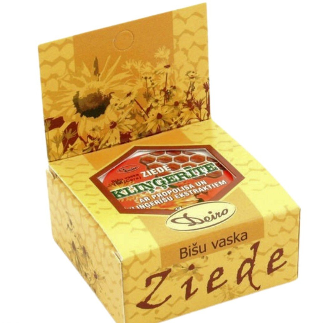 Sastāvs: bišu vasks, propolisa biezais ekstrakts, kliņģerīšu ekstrakts.